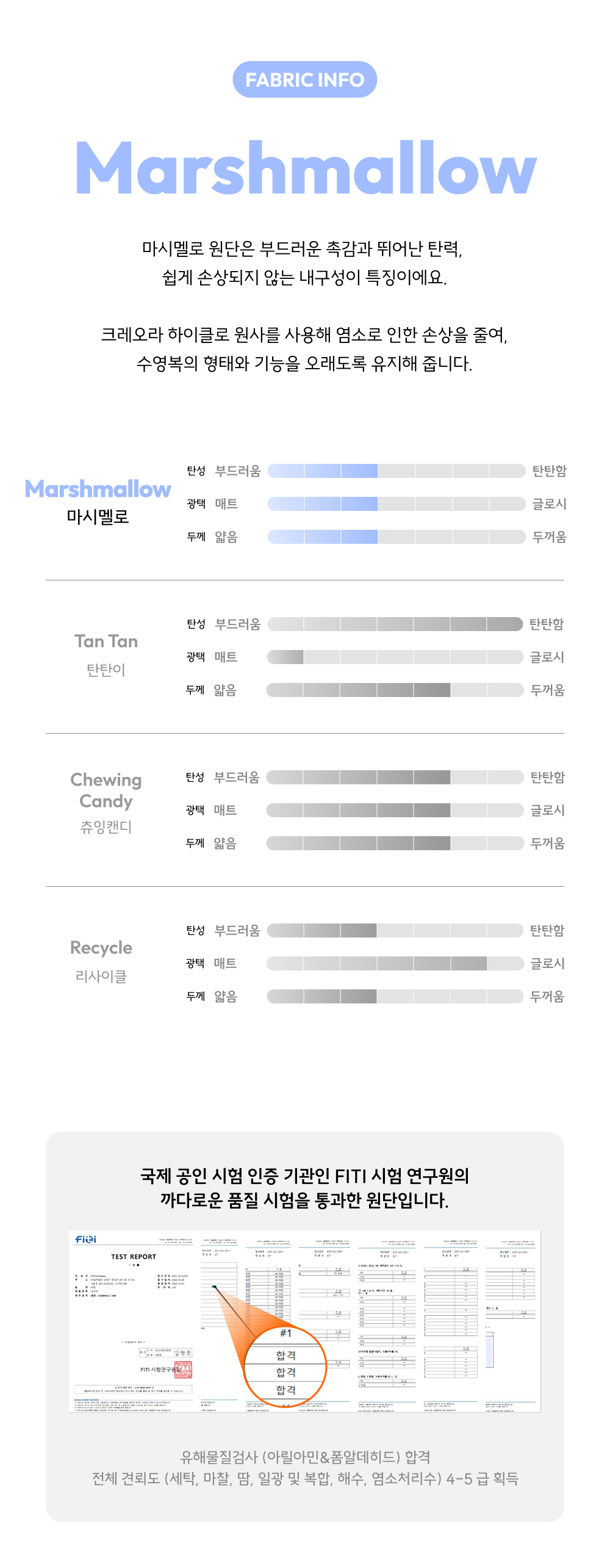 겉감 : 나일론 80%, 폴리우레탄 20%
