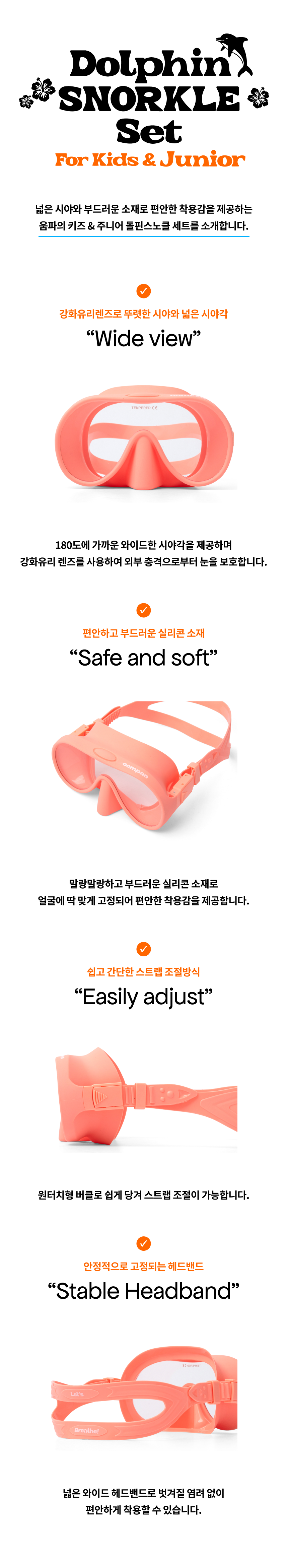 키즈 돌핀 스노클세트 핑크