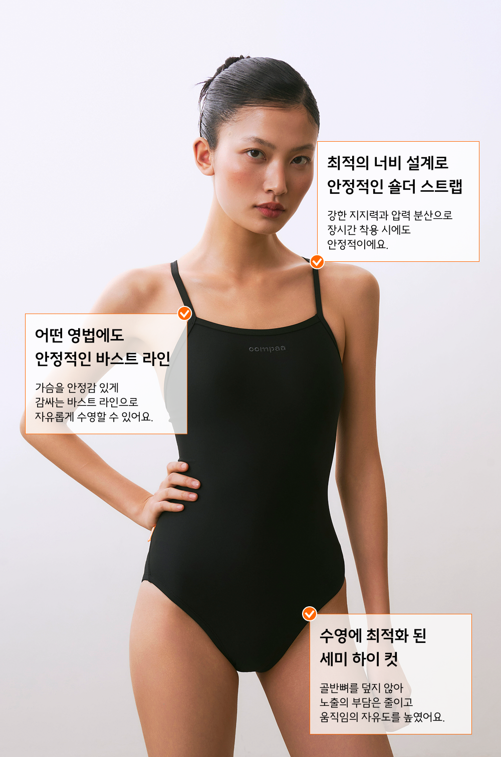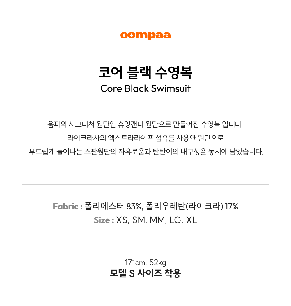 코어 블랙 수영복 [츄잉캔디] [싱글백] [세미하이컷]